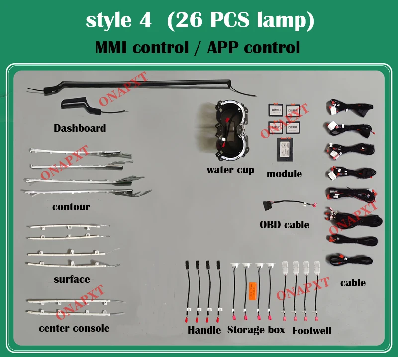 The For Audi A4 A5 S4 S5 B9 2016- 30-color MMI Led Dashboard Center Console Door Ambient Light Decorative Lift Speaker Lamp at EUR 52.59 focuses on deep MMI integration, mimicking the factory ambient lighting experience found in higher-spec Audis. This system communicates bidirectionally with your vehicle's CANbus system, meaning the lighting can respond to various vehicle states—dimming when you turn off the ignition, brightening when doors open, or pulsing with turn signals if configured.