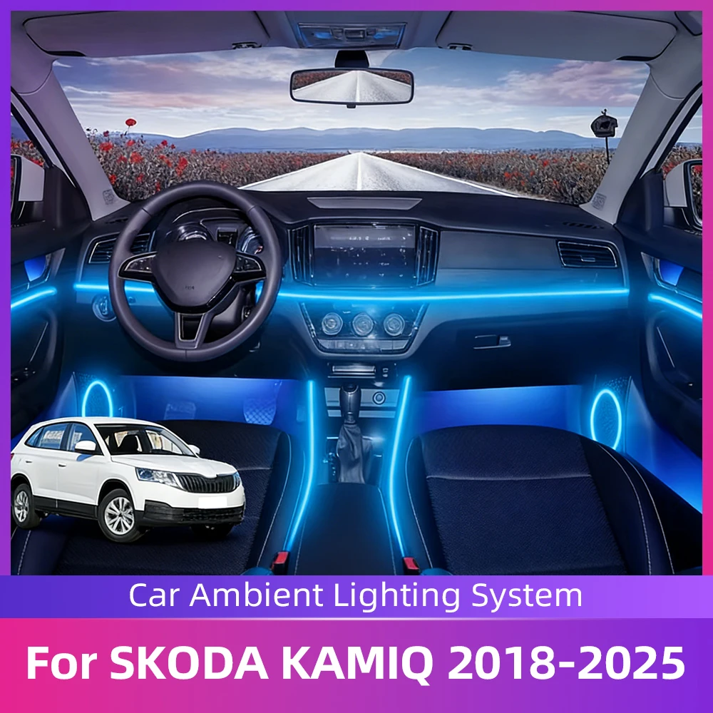 Car Interior Lighting Music Sync Car Ambient Lights Multi Colour RGB LED Mood Light For The SKODA KAMIQ 2018 2019 2020-2025